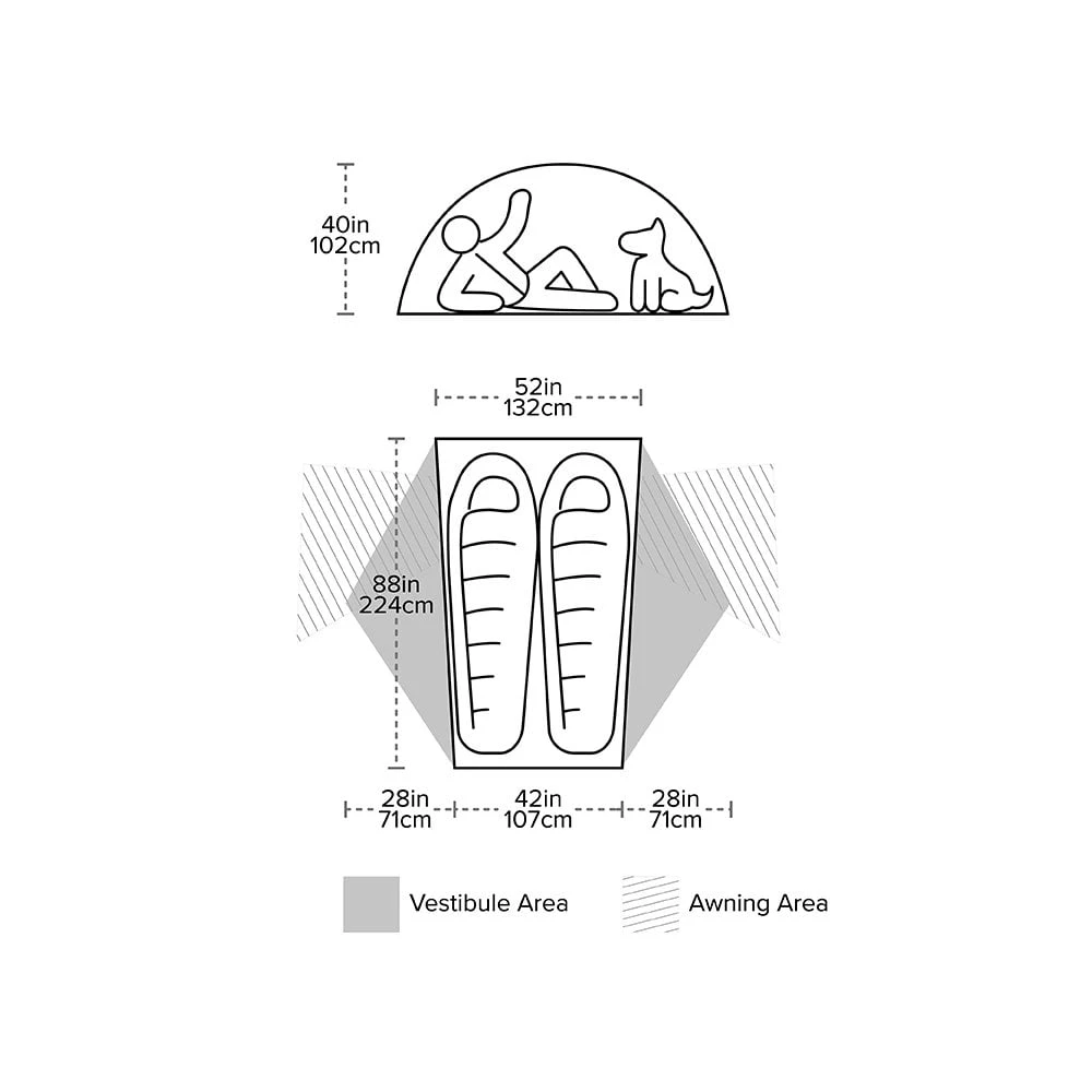 Stash oversized gear in 3D shelf, utilizing dead space above your feet or securely store helmet on top of tent body with elastic webbing and use daisy-chain webbing loops on the fly exterior to dry wet clothes and gear