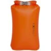 The Exped Ultralite waterproof drybags with fold-roll-closure are made of 15 D Nylon with silicone coating on the outside and PU coating on the inside.