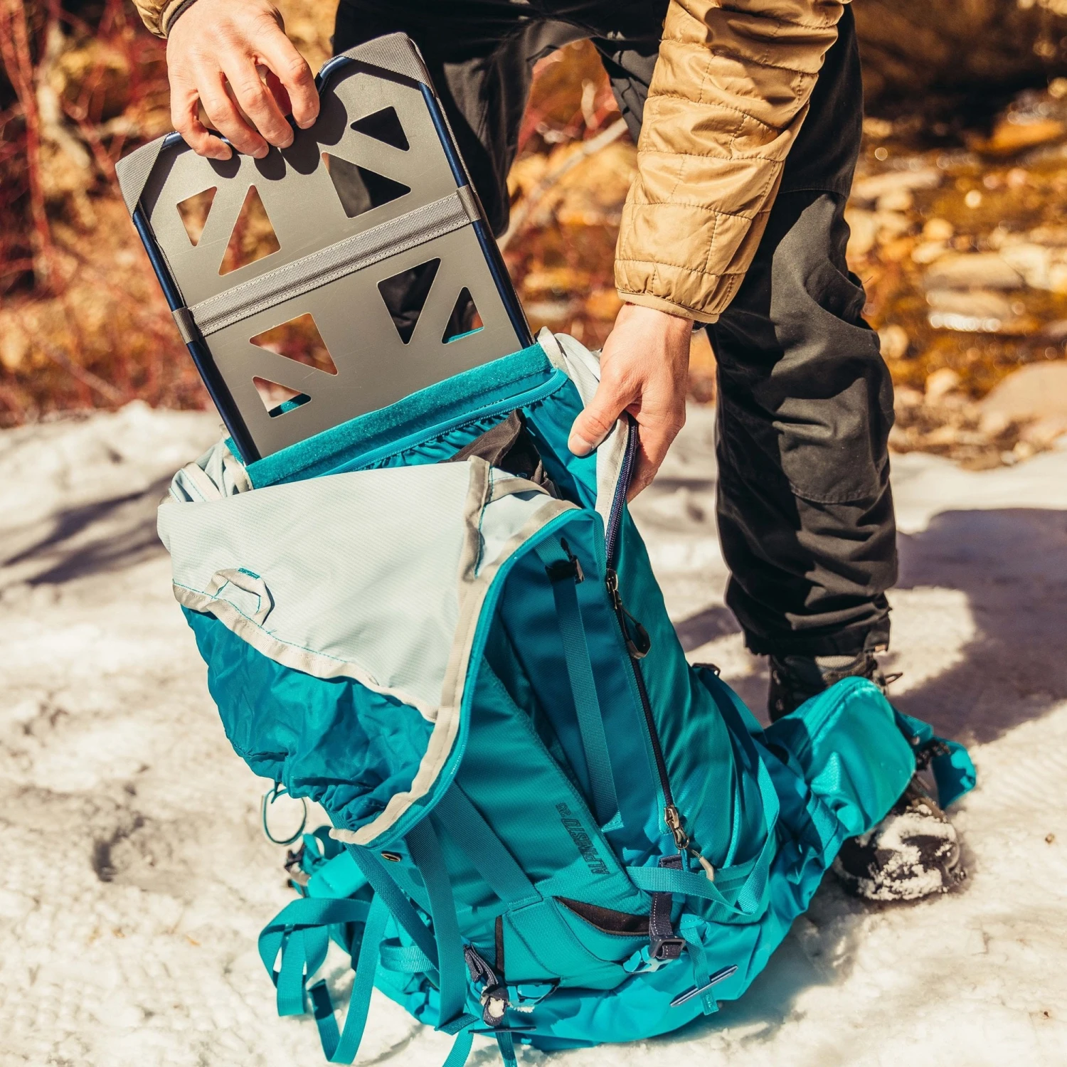 •   Removable frame sheet and perimeter frame, hip belt and top pocket to transform to a lighter pack