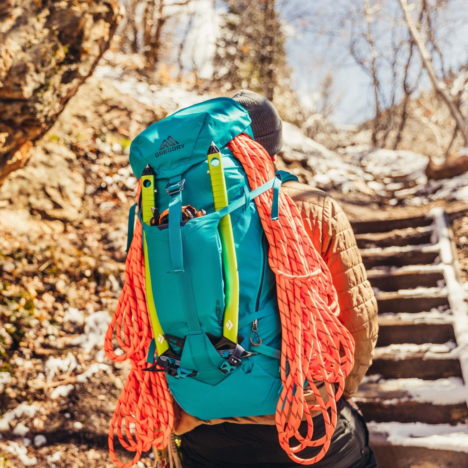 The Alpinisto 35 backpack is a climbing and winter sports pack with winter specific features and made from durable materials.