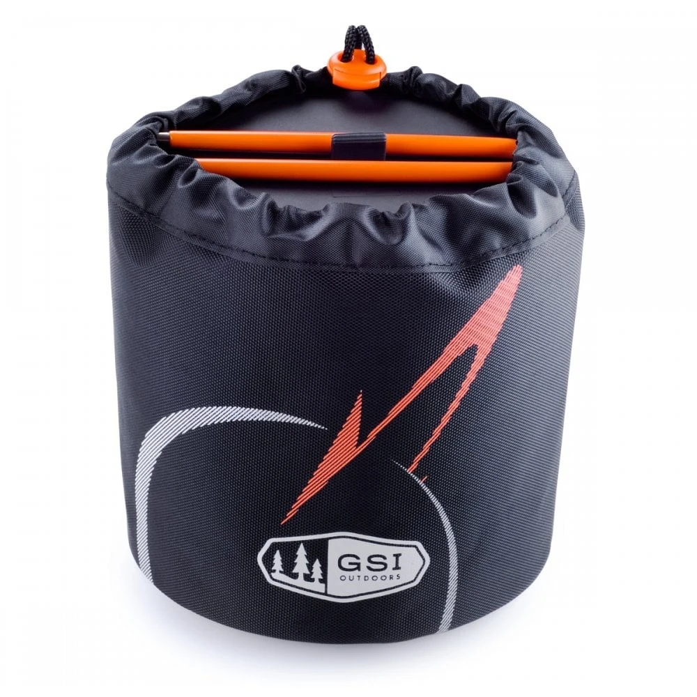 • One-person system includes: 1.1L pot, strainer lid/Sip-It top, 14oz mugs/bowl with insulated sleeve, folding Foon, dual-purpose carry sack/sink