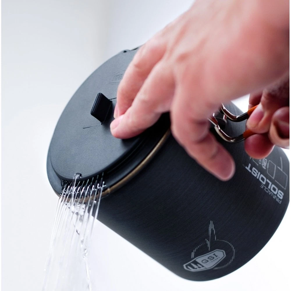 The GSI Pinnacle Soloist is a lightweight and really compact outdoor cooking set with everything you need for simple soloist meals.