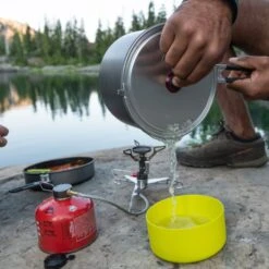 It can turn your tiny, ultralight stove into a group cooking pro or transform a tall stove system into a non-tippy coffee machine on your camp table.
