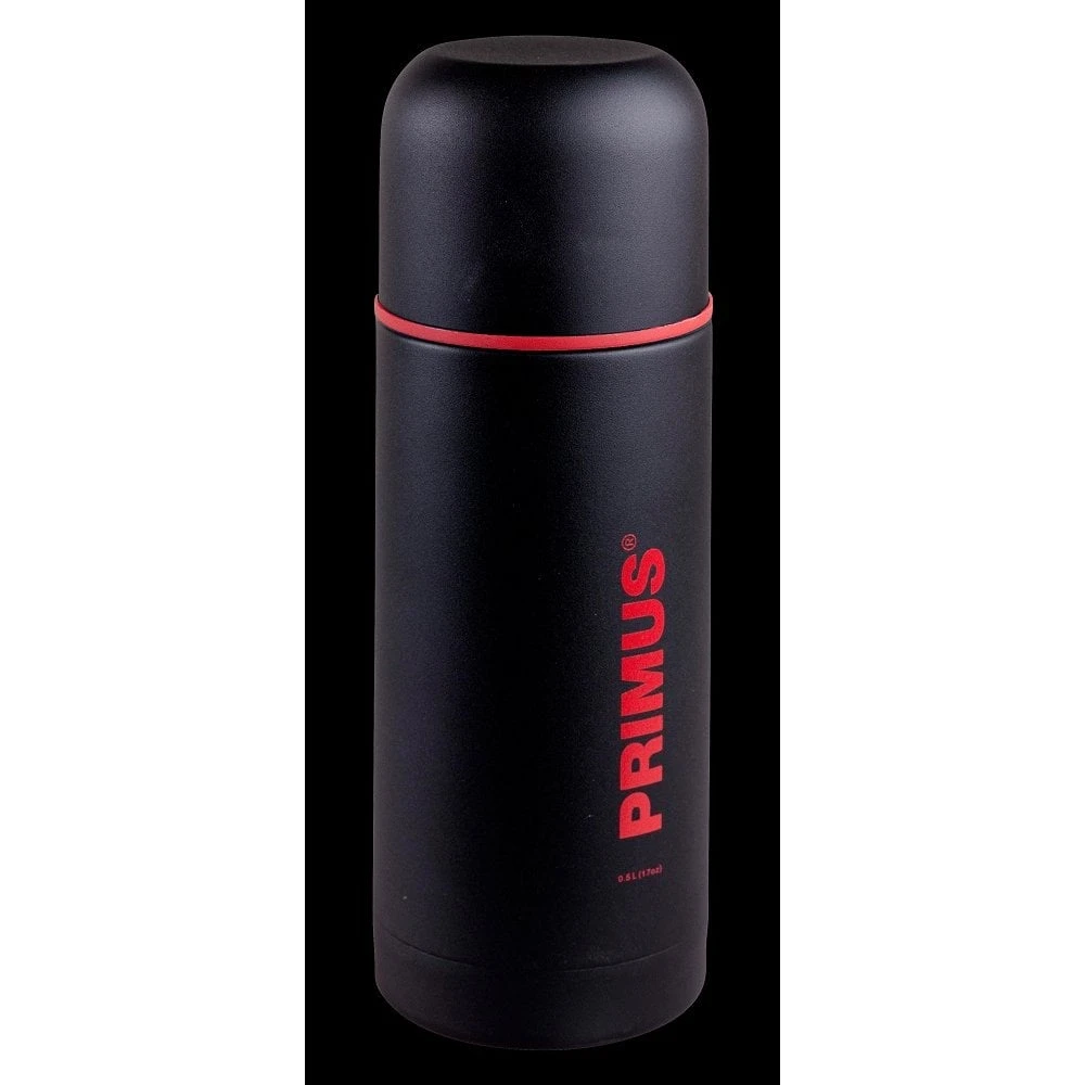 Primus 0.5 litre double-walled vacuum bottle in powder coated stainless steel with “Quick-Stop” seal and combined lid and mug. Offers excellent insulation and low weight without sacrificing durability.